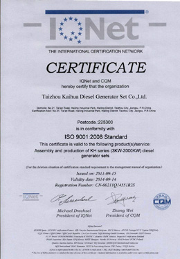 凱華靜音發(fā)電機(jī)產(chǎn)品符合GB/T2820-1997或GB12786-91國家標(biāo)準(zhǔn),并已批量投放市場。超靜音